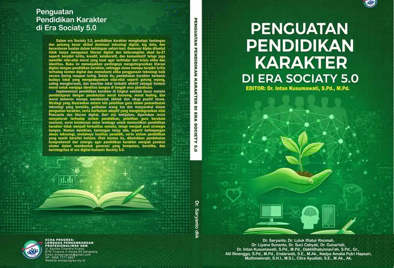 Dalam era Society 5.0, pendidikan karakter menghadapi tantangan dan peluang besar akibat dominasi teknologi digital, big data, dan kecerdasan buatan dalam kehidupan sehari-hari. Generasi Alpha dituntut tidak hanya menguasai literasi digital dan keterampilan abad ke-21 seperti berpikir kritis, kreatif, kolaboratif, dan komunikatif tetapi juga memiliki nilai-nilai moral yang kuat agar terhindar dari krisis etika dan identitas. Buku ini menunjukkan pentingnya mengintegrasikan literasi digital dengan pendidikan karakter, sehingga siswa mampu berpikir kritis terhadap konten digital dan memahami etika penggunaan teknologi baik secara daring maupun luring. Selain itu, pendekatan karakter berbasis budaya lokal yang mengedepankan nilai-nilai seperti gotong royong, saling menghormati, dan kearifan lokal terbukti efektif sebagai fondasi moral untuk menjaga identitas bangsa di tengah arus globalisasi.